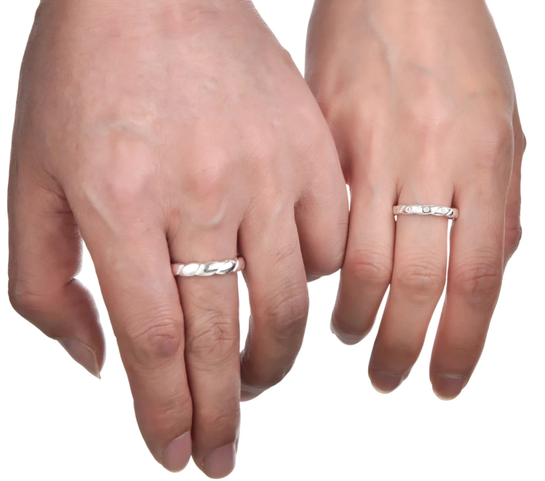 Anillos de matrimonio de plata 925 diseñados para celebrar el amor y la conexión entre dos personas. Ofrecen un diseño único con un patrón trenzado que simboliza unión y fuerza. Uno de los anillos presenta delicados cristales incrustados, añadiendo un toque sutil y sofisticado. Su acabado pulido y brillante los hace perfectos para cualquier ocasión, ya sea cotidiana o especial. Ideales para parejas que buscan complementar su estilo con elegancia y significado.