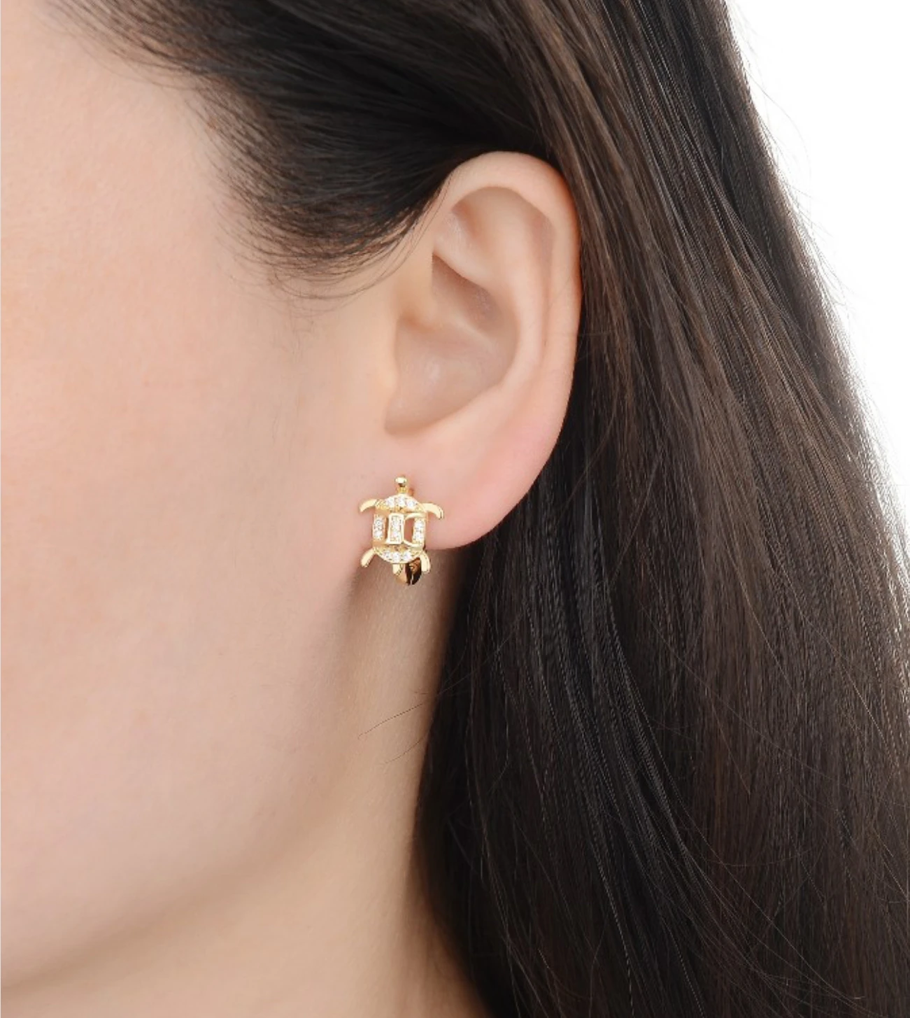 Pendientes ligeros y elegantes con un diseño único de tortuga adornado con piedras brillantes.
