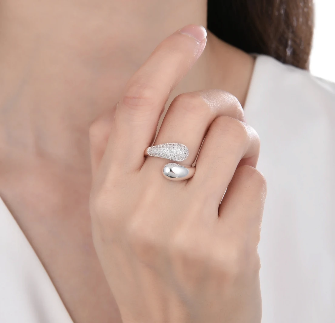 Anillo de Cristal de Plata Abierto: Descubre la elegancia moderna con este anillo asimétrico. Su diseño abierto ofrece un toque único, donde un extremo está adornado con pequeños cristales transparentes y el otro muestra una superficie metálica lisa y pulida. Fabricado en plata esterlina o acero inoxidable, este anillo no solo brilla, sino que también presume de durabilidad y estilo. Ajustable para adaptarse a diferentes tamaños, es perfecto para cualquier ocasión, ya sea casual o formal. Atrévete a destacarte con su diseño minimalista y glamuroso.