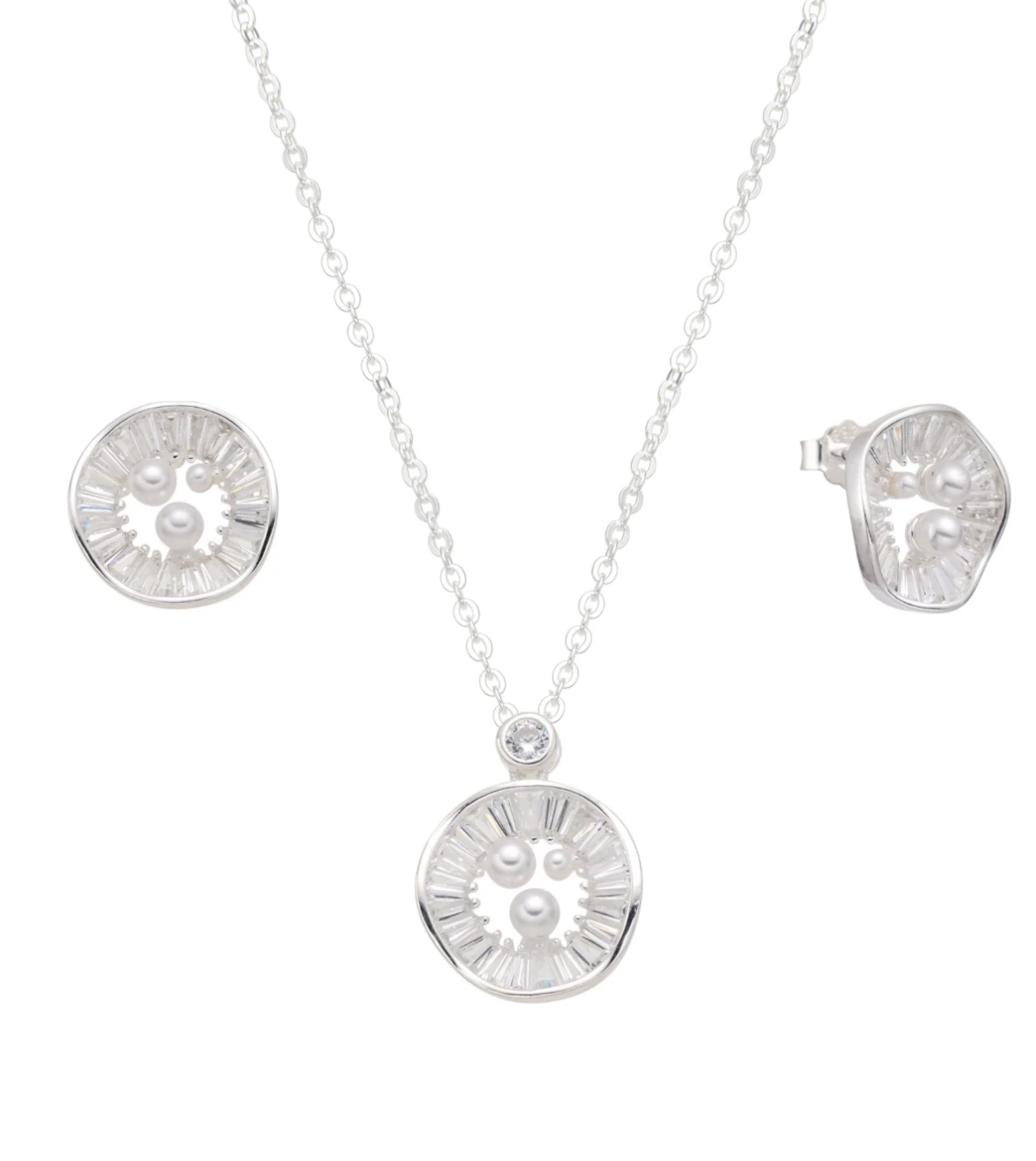 Conjunto de Collar y Pendientes de Plata: Este sofisticado conjunto de joyería, compuesto por un collar y pendientes, es un accesorio imprescindible para cualquier amante de la elegancia. Hecho de plata 925, el collar presenta una cadena delicada que se adapta cómodamente al cuello. Los colgantes y pendientes destacan con acentos perlados y cristalinos que capturan la luz, creando un efecto deslumbrante. Perfecto para el uso diario o ocasiones especiales, su diseño único garantiza que brilles con cada uso.