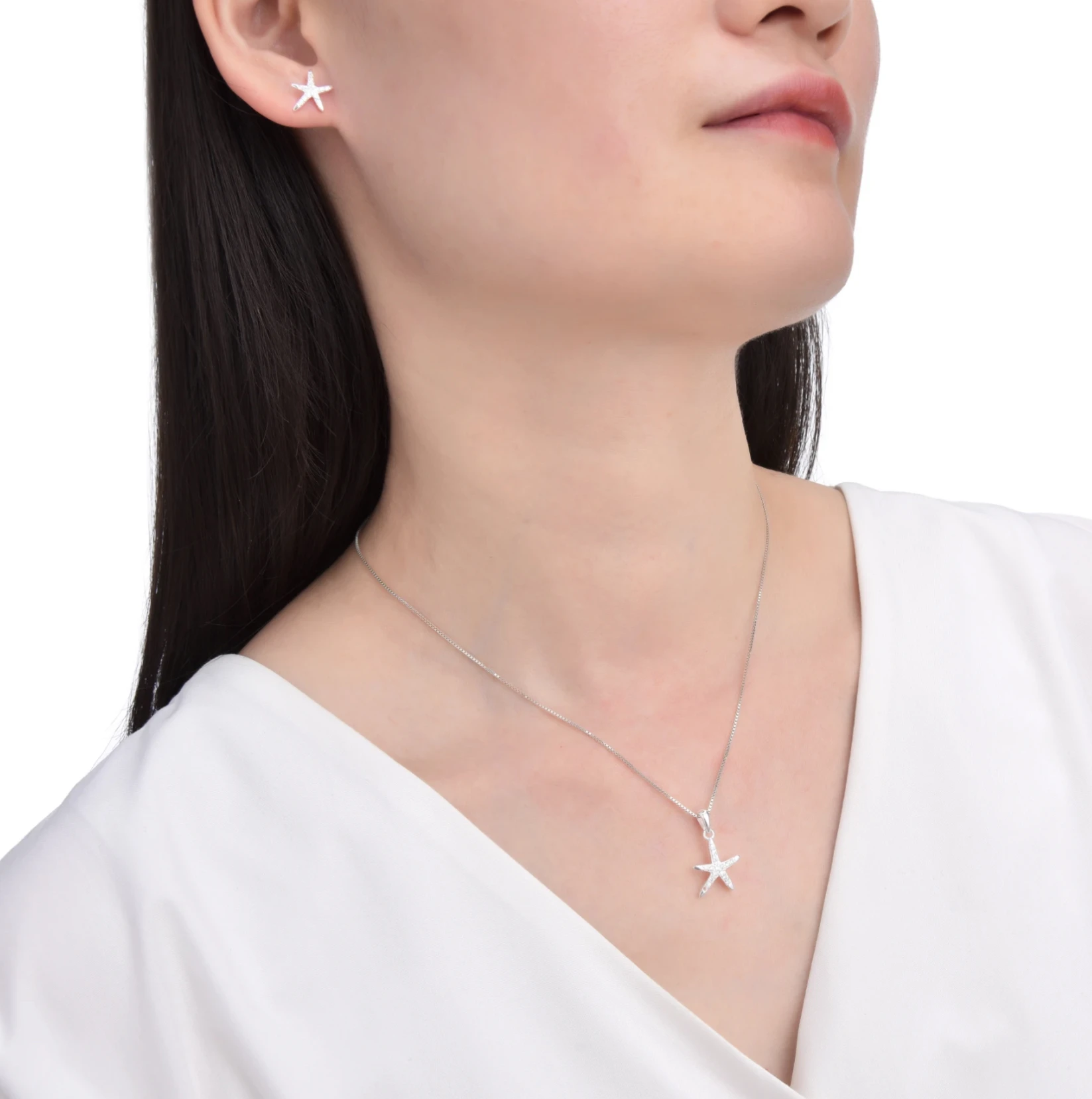 Set de joyería Starfish: diseñado para aquellos que buscan elegancia en cada detalle. Este conjunto, compuesto por un dije y pendientes, transmite un brillo sofisticado gracias a su acabado plateado y piedras resplandecientes parecidas a diamantes. Fabricados posiblemente en plata 925, su textura metálica destaca por su durabilidad y encanto. El colgante, delicadamente dimensionado, es perfecto para cualquier ocasión, mientras que los pendientes ligeros garantizan comodidad durante todo el día. Ideal para eventos formales o celebraciones especiales, la forma intricada de las estrellas de mar añade un toque único y marino a cualquier atuendo.